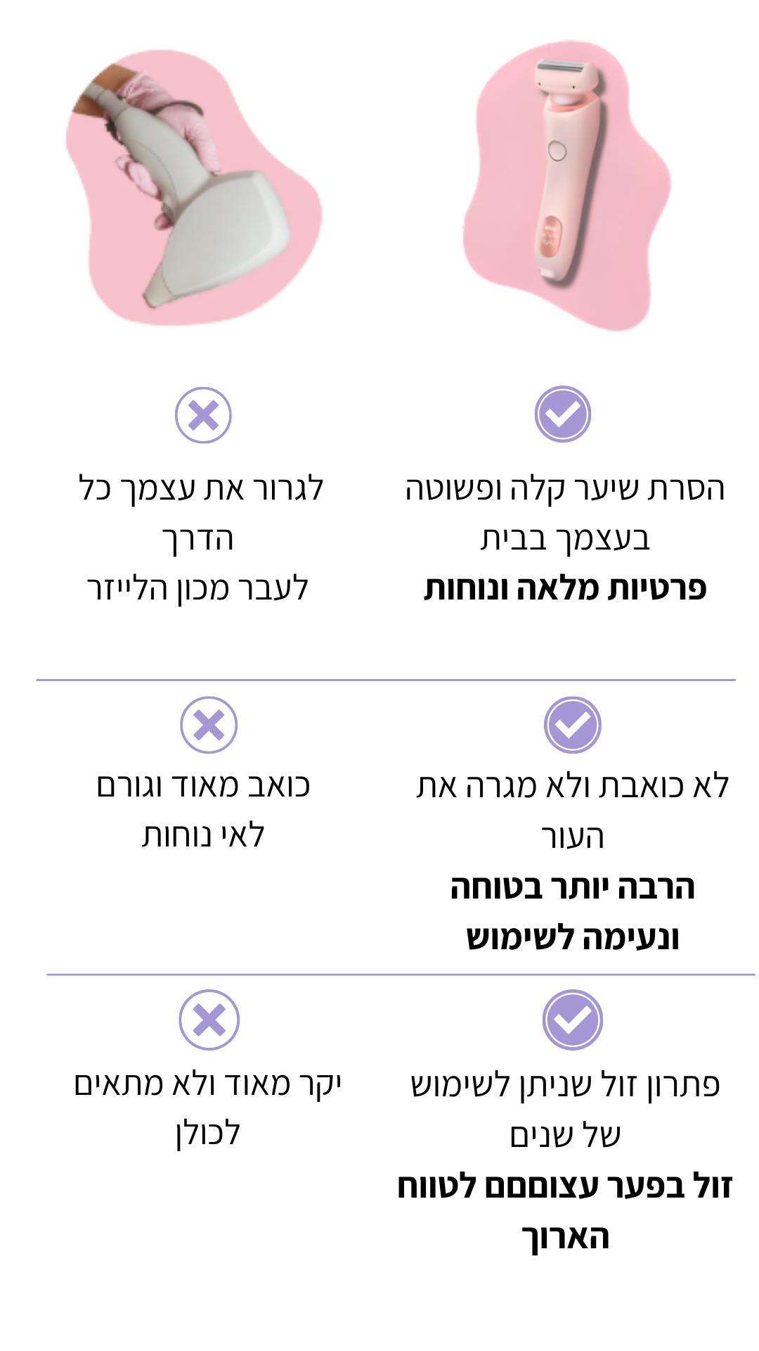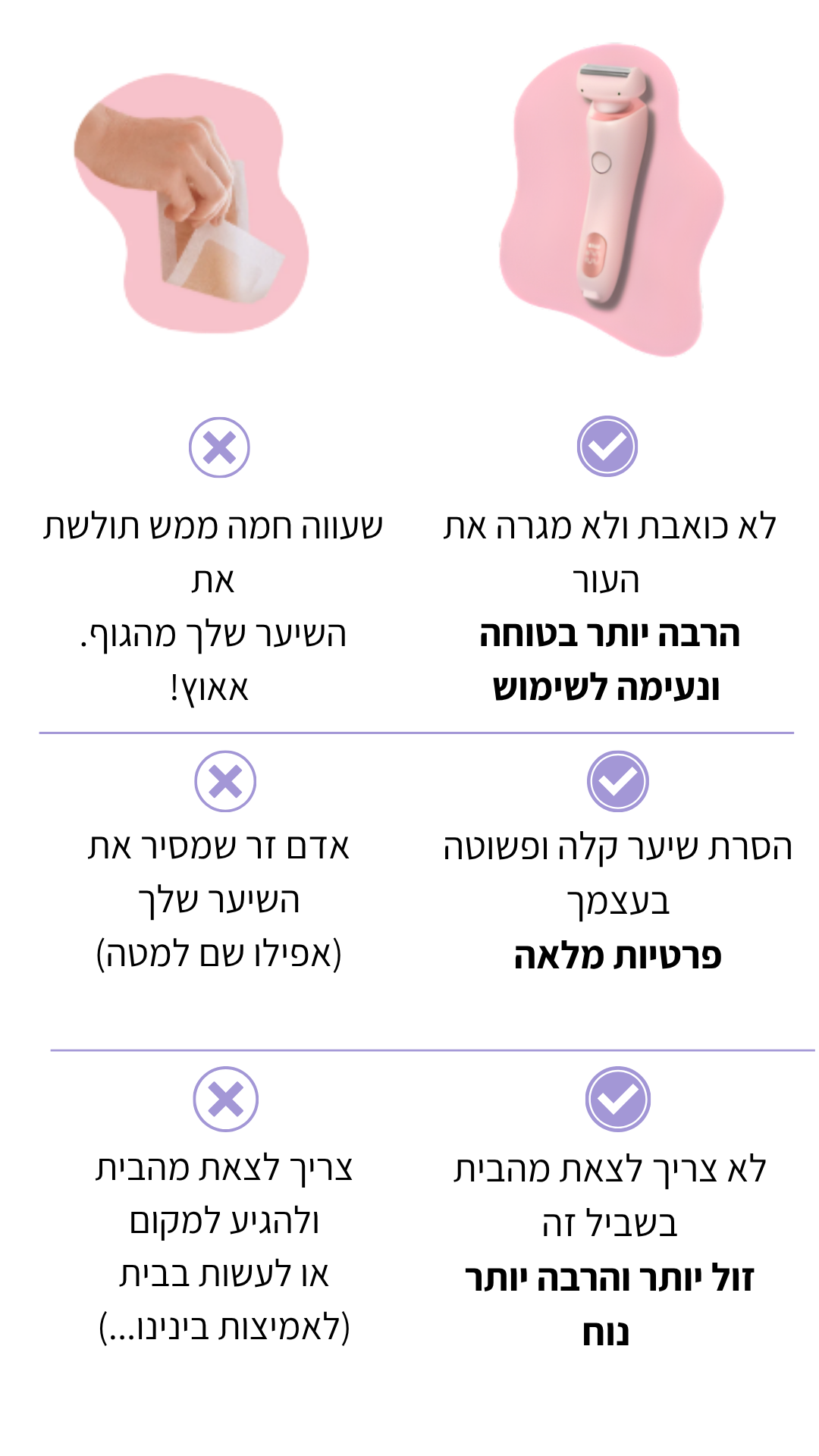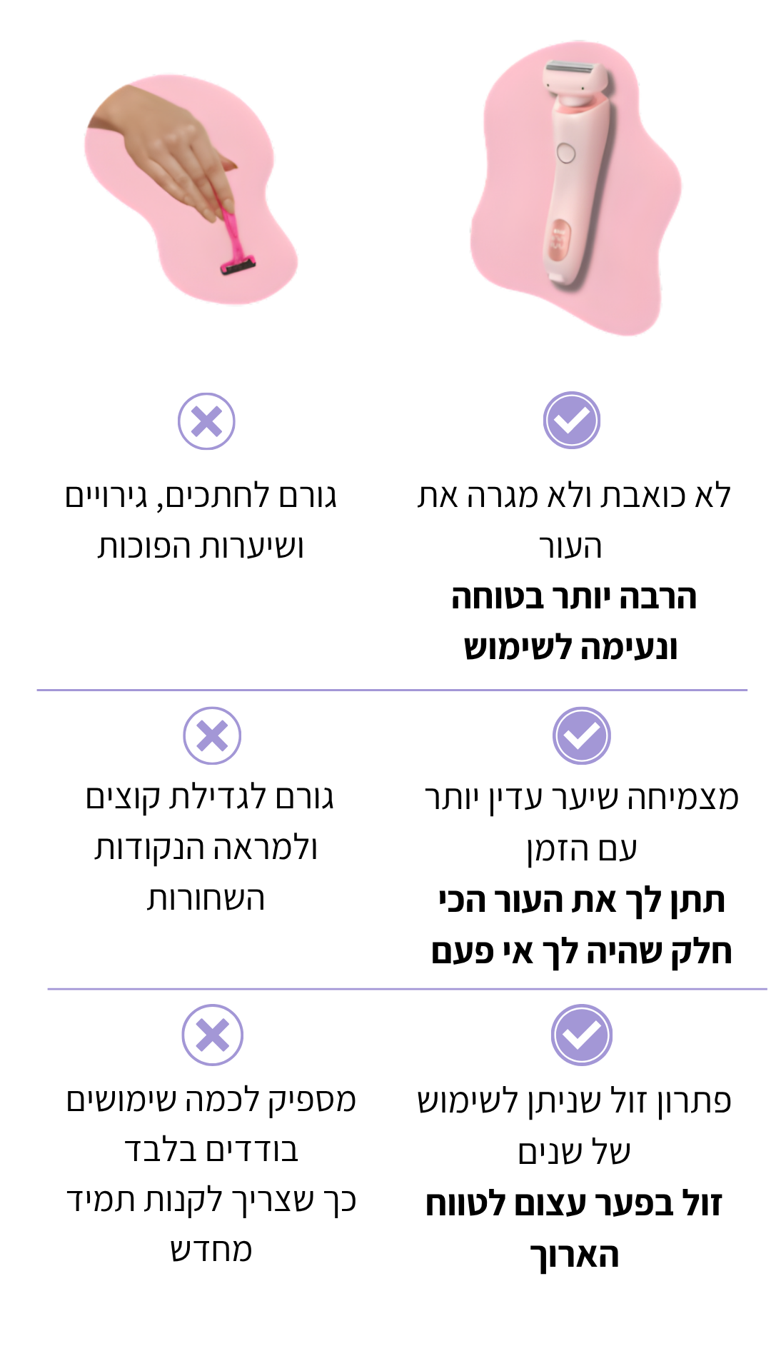 💜 עור חלק ונעים בלי חתכים, בליטות וגירויים